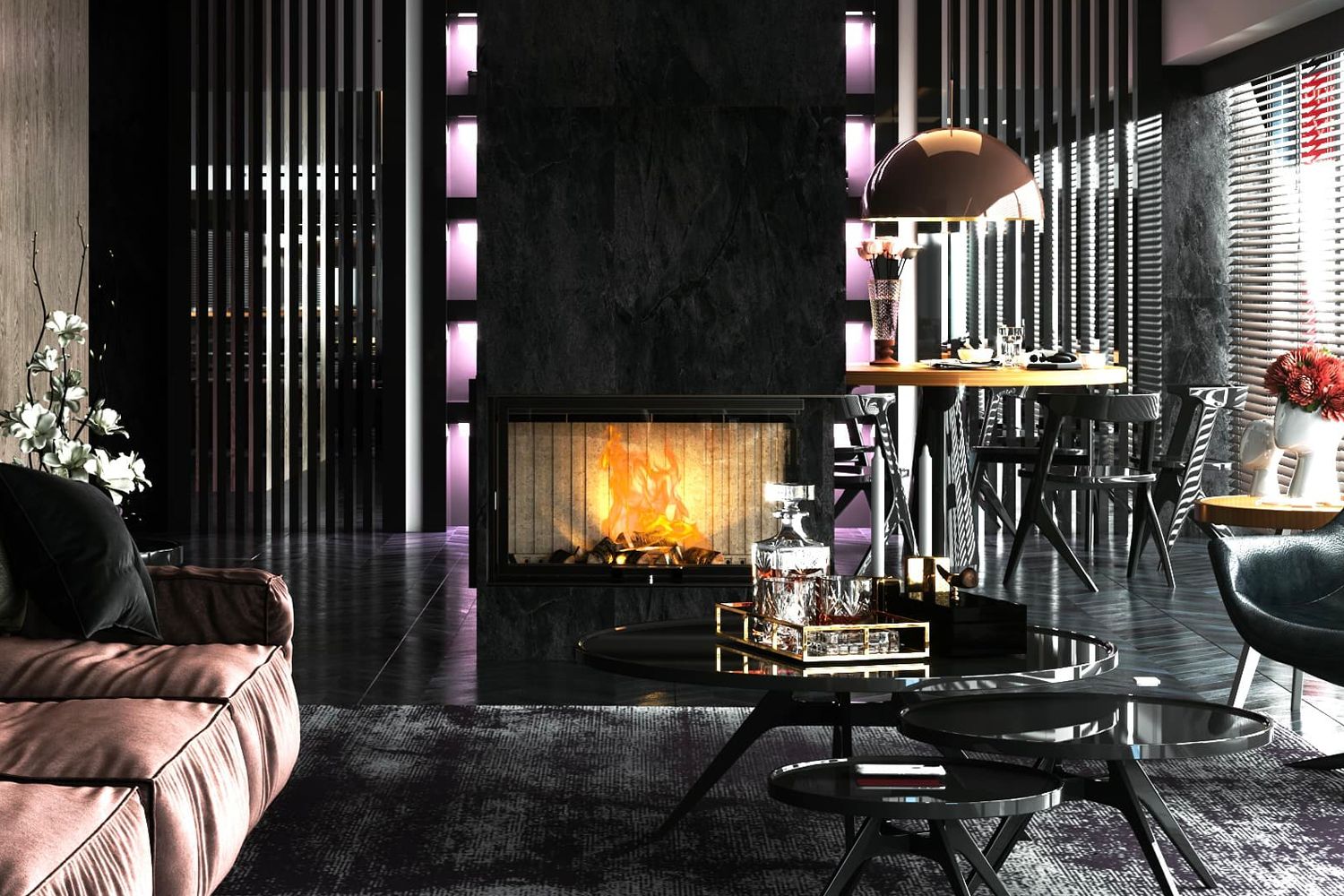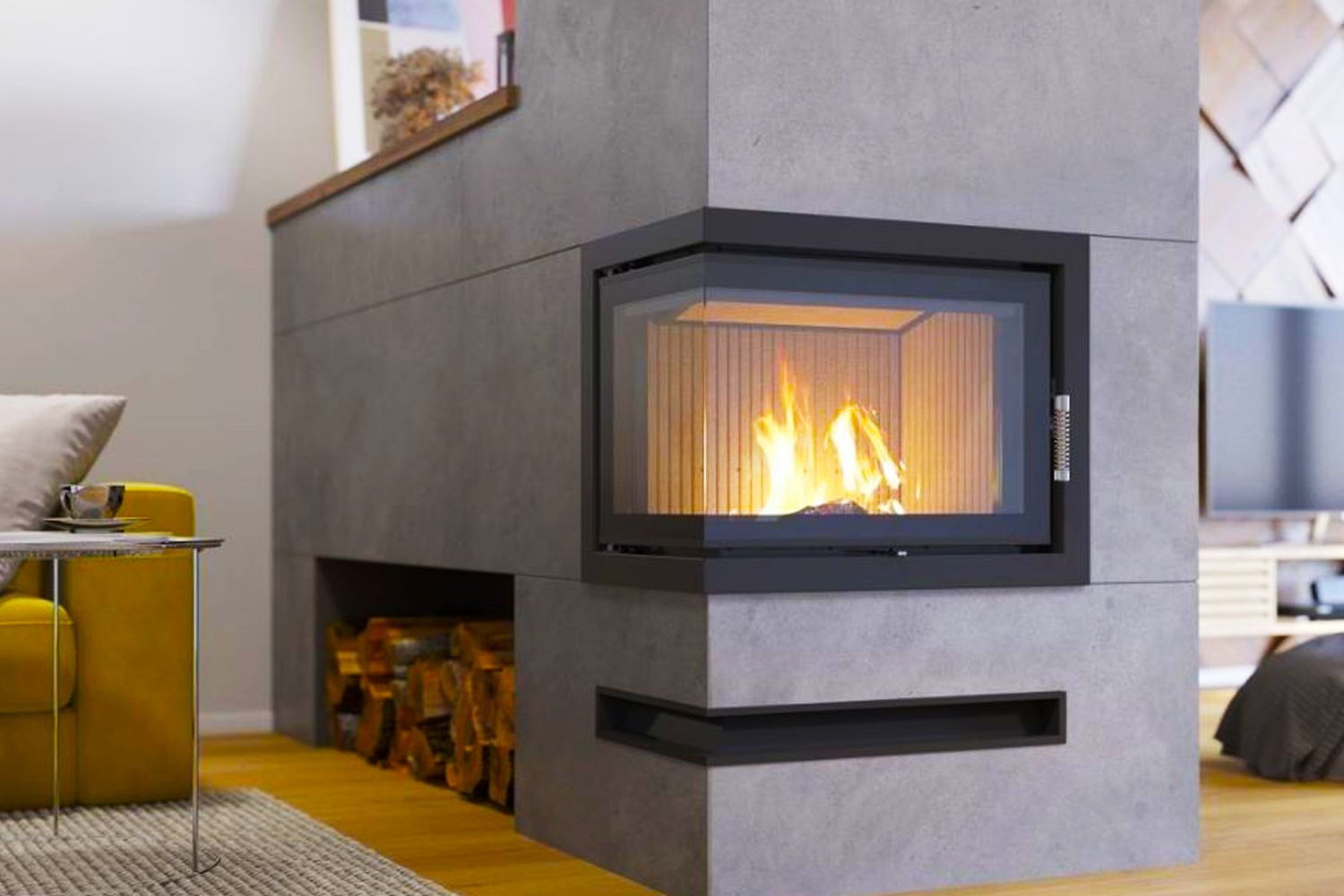 - Kamin s pogledom na vatru s dvije strane (kutni modeli).