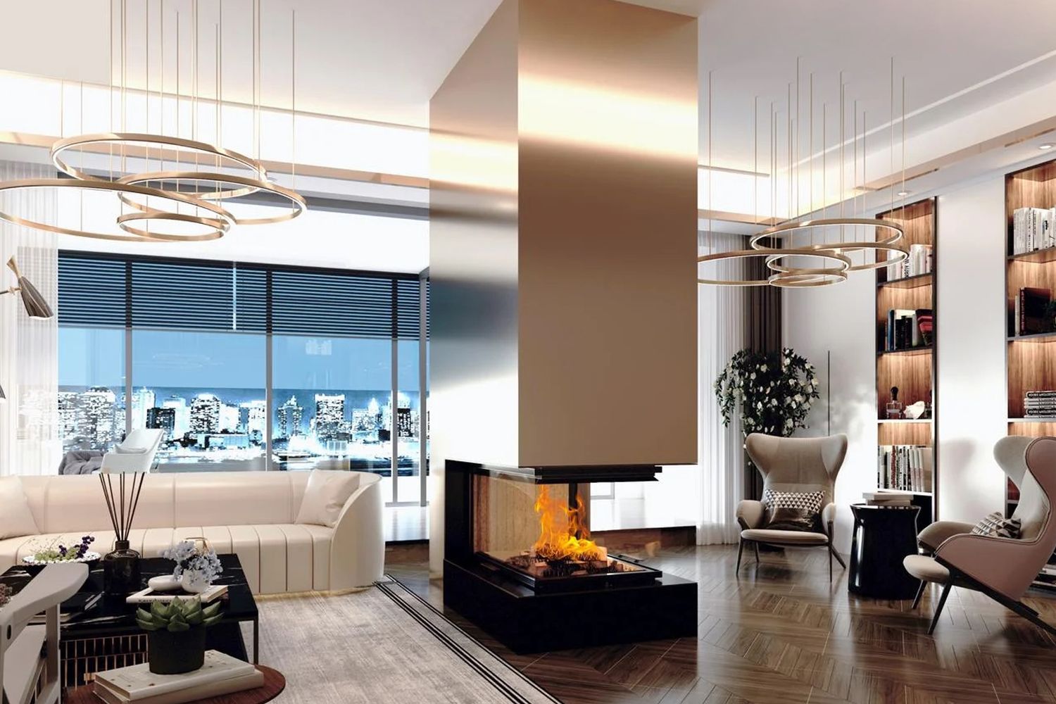 - Kamin s pogledom na vatru sa sve četiri strane.
