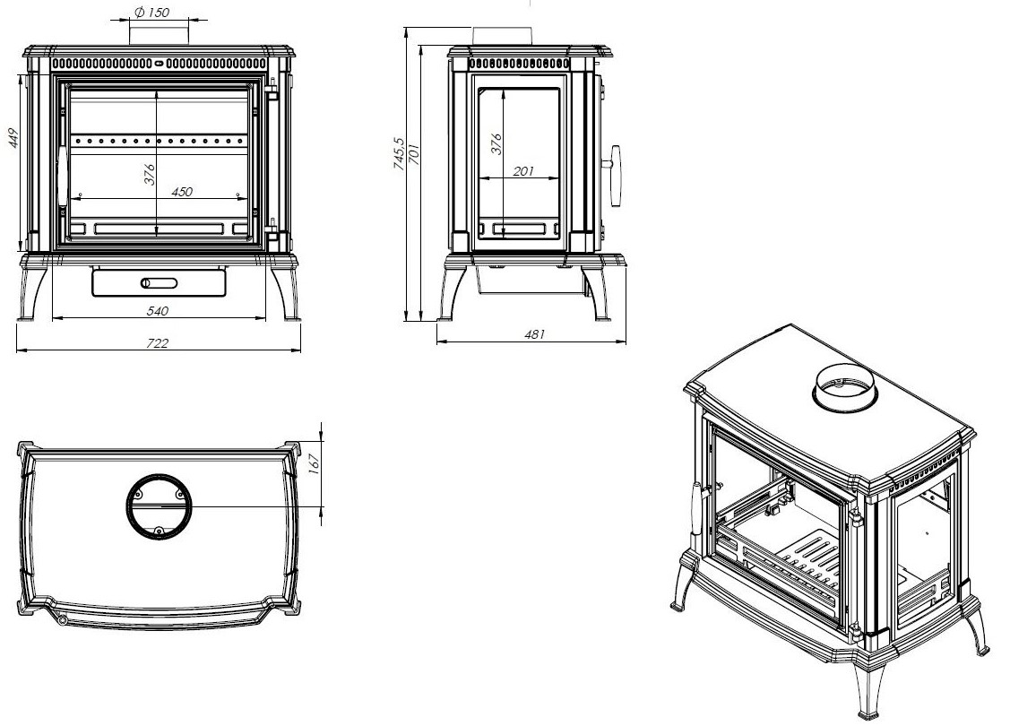 Brema peć na drva jedinstvena je kaminska peć s inovativnim dizajnom. Ovaj visokokvalitetni kamin od lijevanog željeza odlikuje se jedinstvenim stilom i elegancijom. Brema ima podesivi tercijarni sustav dovoda zraka u komoru za izgaranje, tzv. “naknadno sagorijevanje” koji ulazi u peć kroz ulaze smještene na stražnjoj stijenci komore.