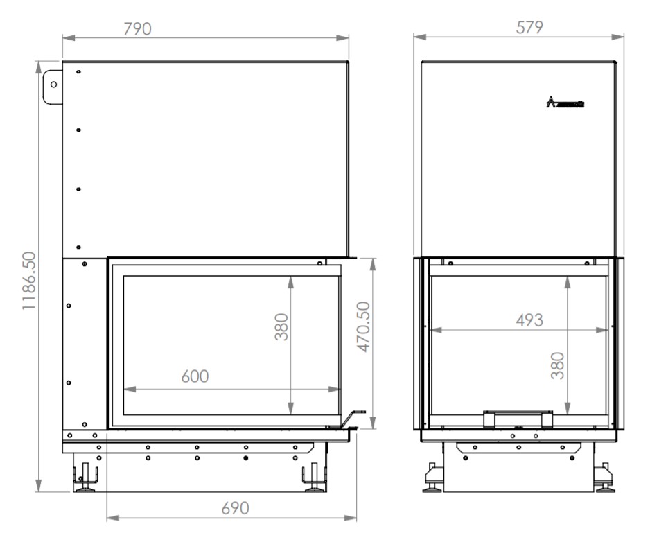 Tehnički crtež kamina Crystal Eco 3D 50x60 A.caminetti
