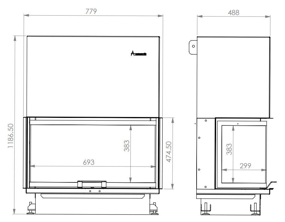 Izrađen od čelika obloženog vermikulitom, s dimovodnim priključkom fi 200 mm i sustavom vertikalnog podizanja vrata (giljotina).