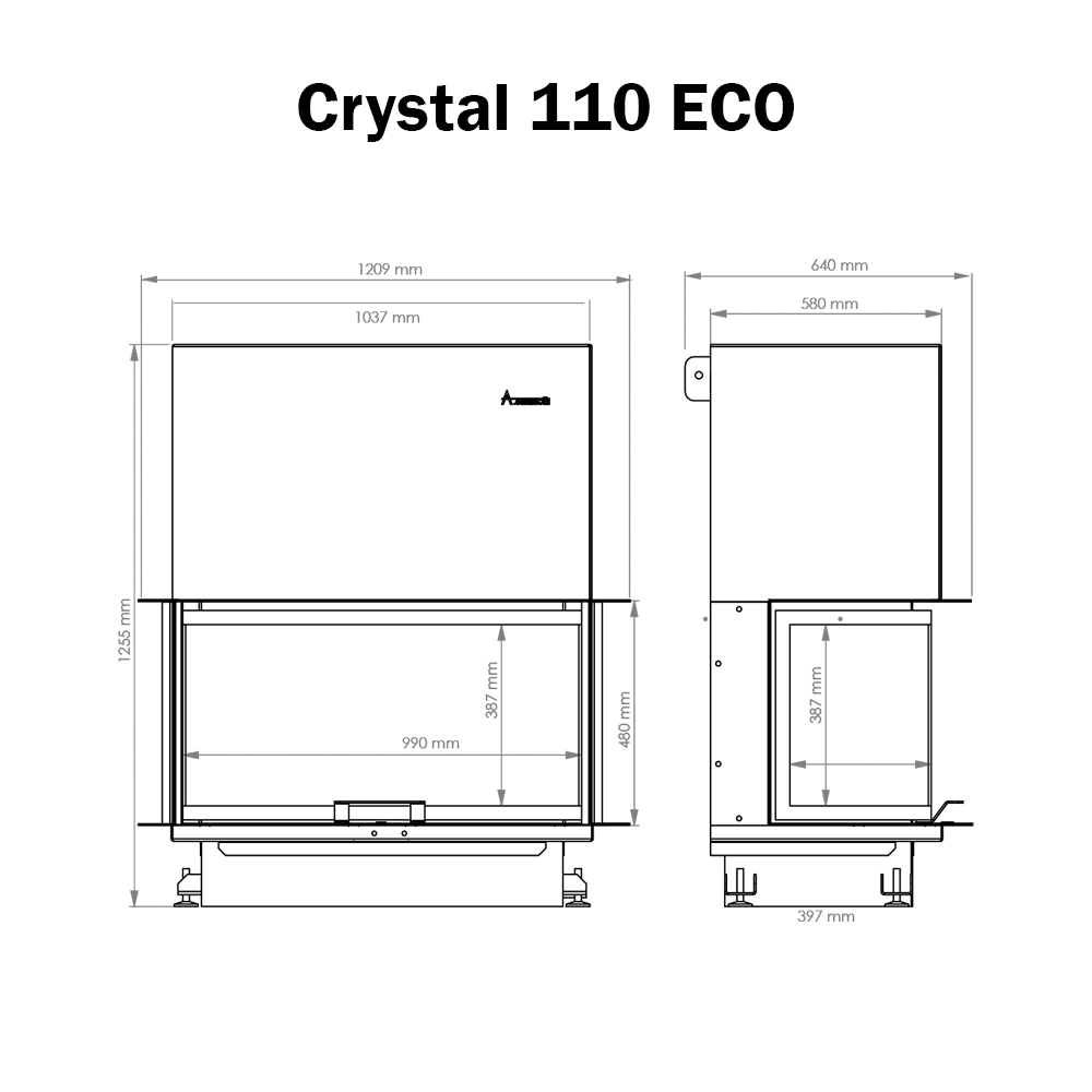 Preuzmite ovdje tehnički crtež – Kamin na drva Crystal 110 ECO