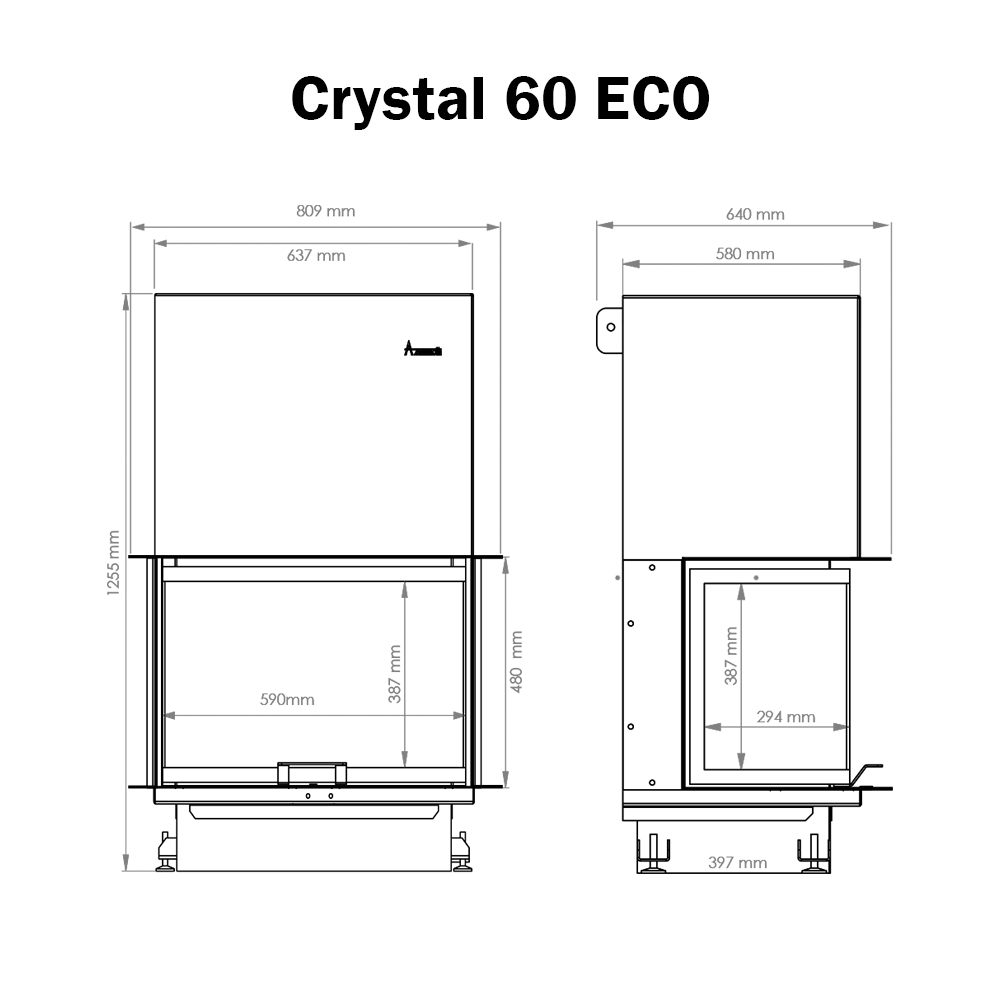 Preuzmite ovdje tehnički crtež – Kamin na drva Crystal 60 ECO