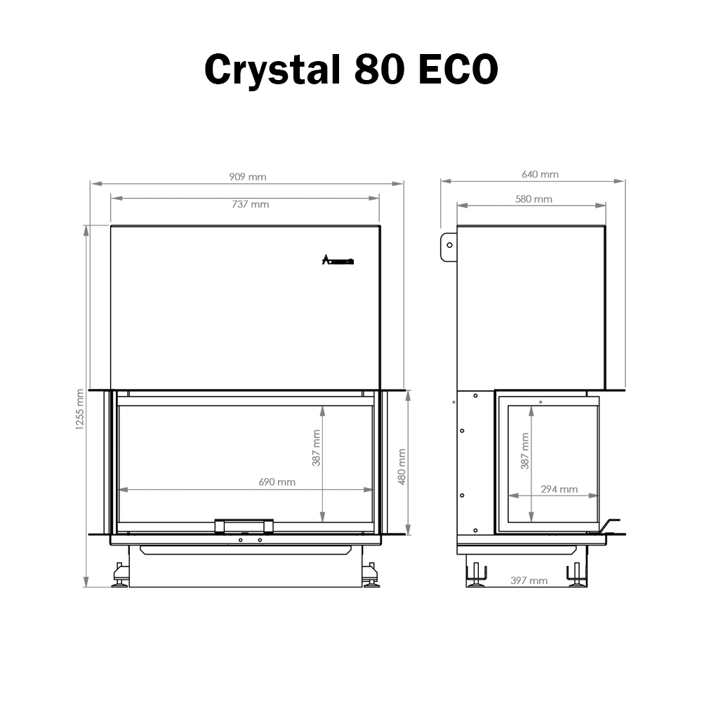 Preuzmite ovdje tehnički crtež – Kamin na drva Crystal 80 ECO