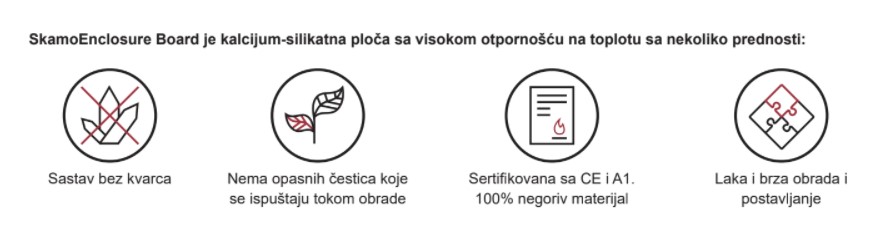 Skamol, pionir u razvoju kalcij-silikatnih ploča, započeo je s integracijom mikrosilike i vapna, razvijajući visokokvalitetne izolacijske ploče koje podnose ekstremne temperature i lako se prilagođavaju različitim konstrukcijama. SkamoEnclosure Board ploče posebno su dizajnirane za ugradnju bez potrebe za tradicionalnom konstrukcijom okvira, čime se pojednostavljuje i ubrzava montaža. Lagane su, nezapaljive i jednostavne za oblikovanje uz upotrebu običnih stolarskih alata.