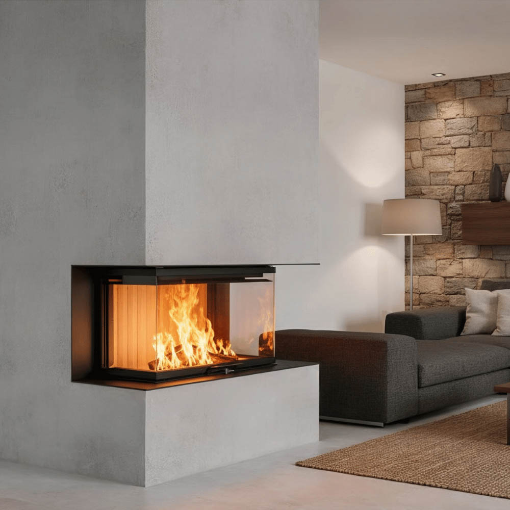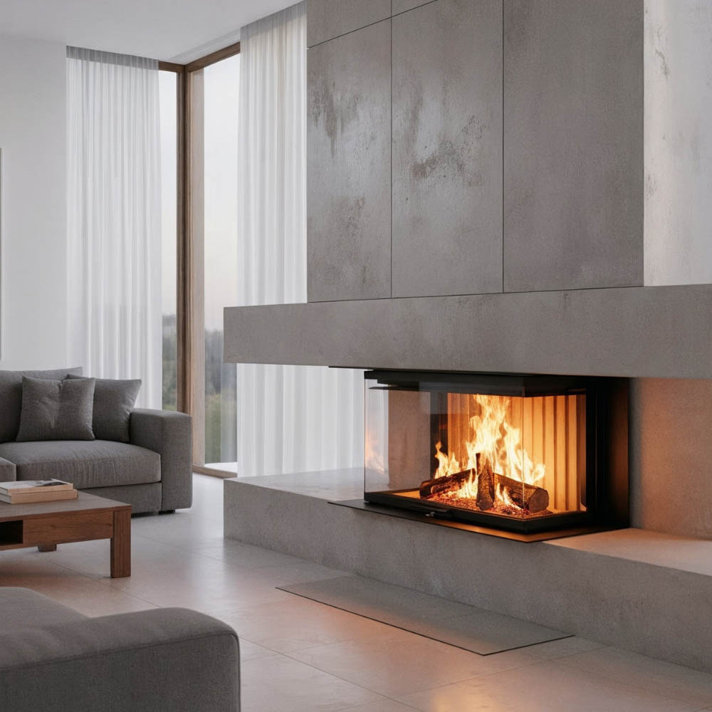 • Trostrani C kamini na drva sa sustavom podizanja vrata