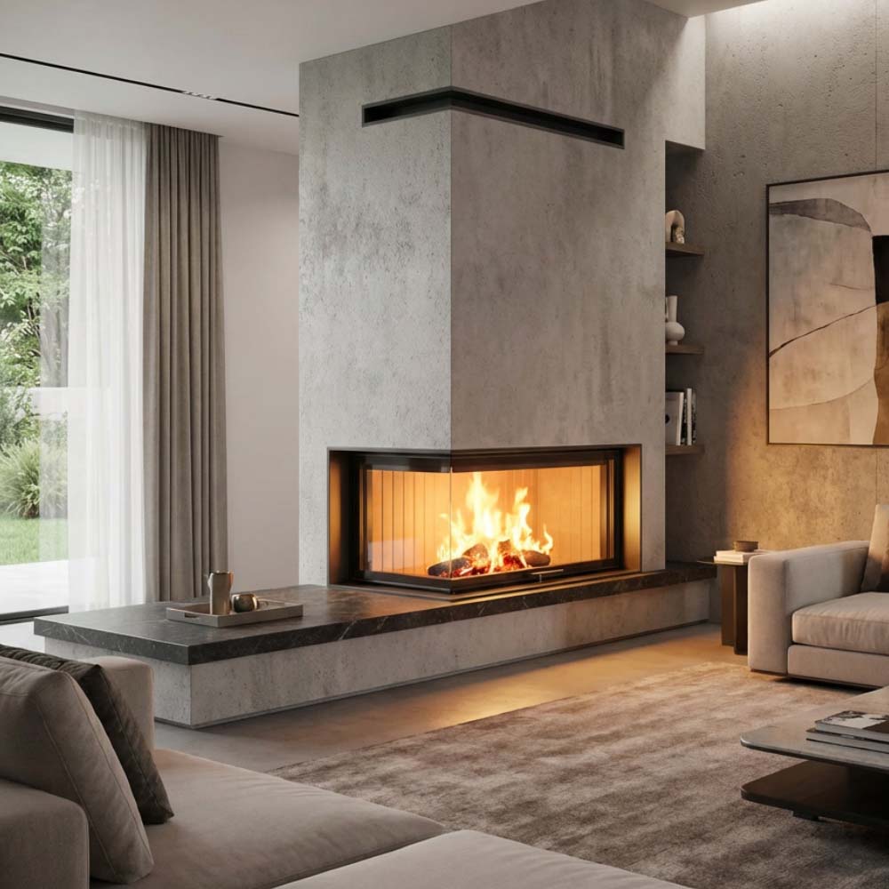 Kamin na drva A.caminetti QUATTRO L – Ugaoni – Sa sistemom podizanja stakala
