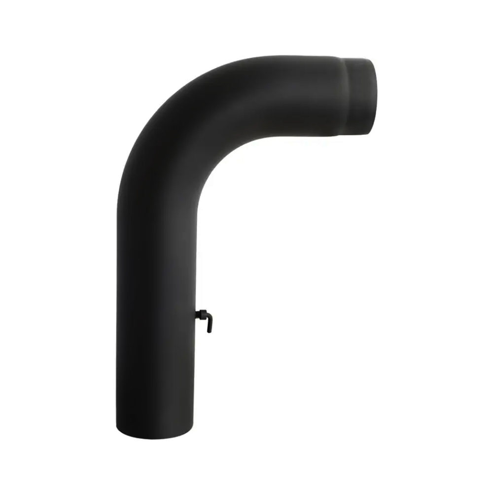 Savijeno koljeno visoko s dimnjačkom zaklopkom 150 mm, kut od 90 stupnjeva koristi se za odvod ispušnih plinova iz peći i kaminskih ložišta bez korištenja više odvojenih proizvoda.