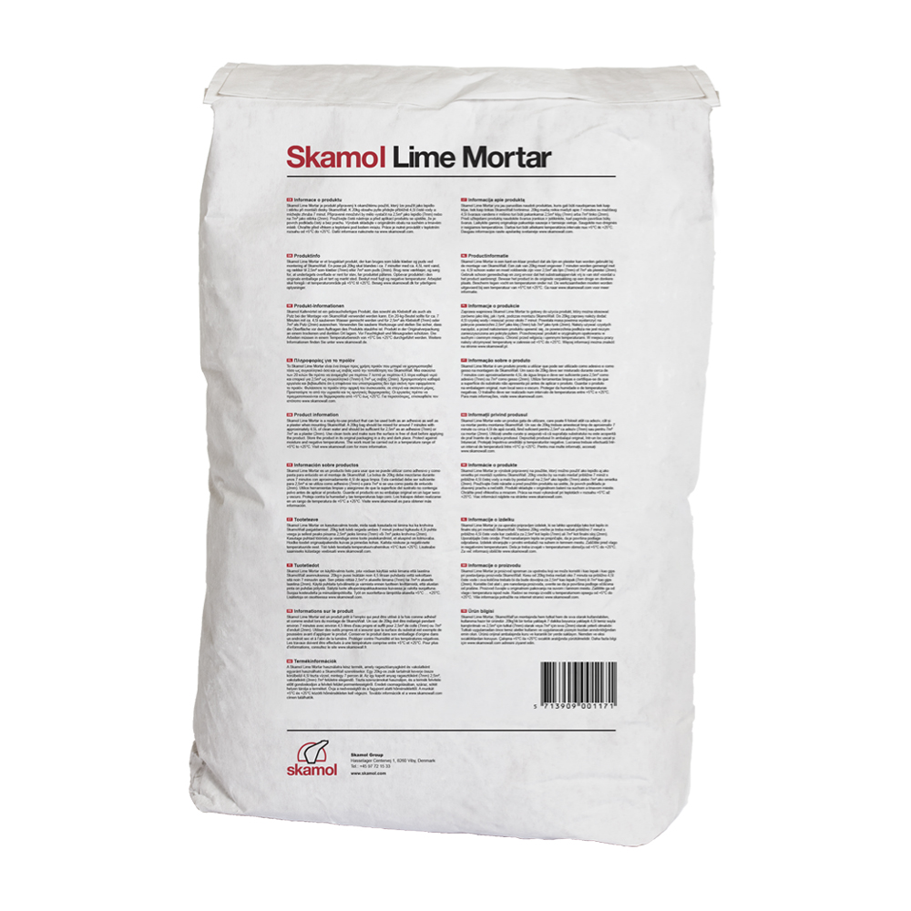 Skamol Lime Mortar je visokokvalitetna, prirodna vapnena masa namijenjena za korištenje u sustavu SkamoWall. Može se koristiti kao ljepilo (debljina sloja cca 7 mm) ili kao fina završna žbuka/glet masa (cca 2 mm), što ga čini idealnim izborom za unutarnju izolaciju, renovacije i sanacije prostora s povišenom vlagom.