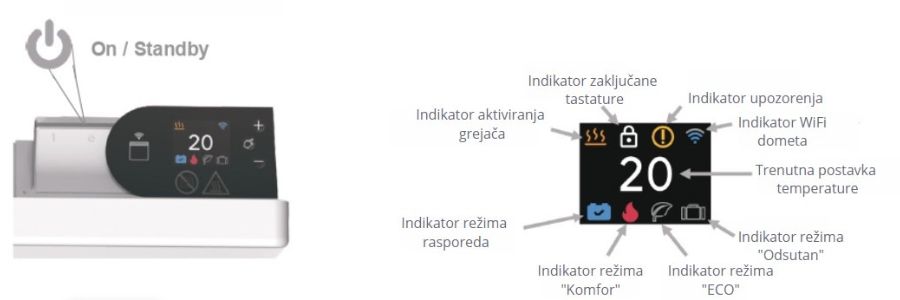 WiFi kontrola omogućuje jednostavno podešavanje temperature pomoću digitalnog zaslona, a dostupni načini rada uključuju Comfort, Eco, Away i Standby, čime radijator pruža fleksibilnost u svakodnevnom korištenju.