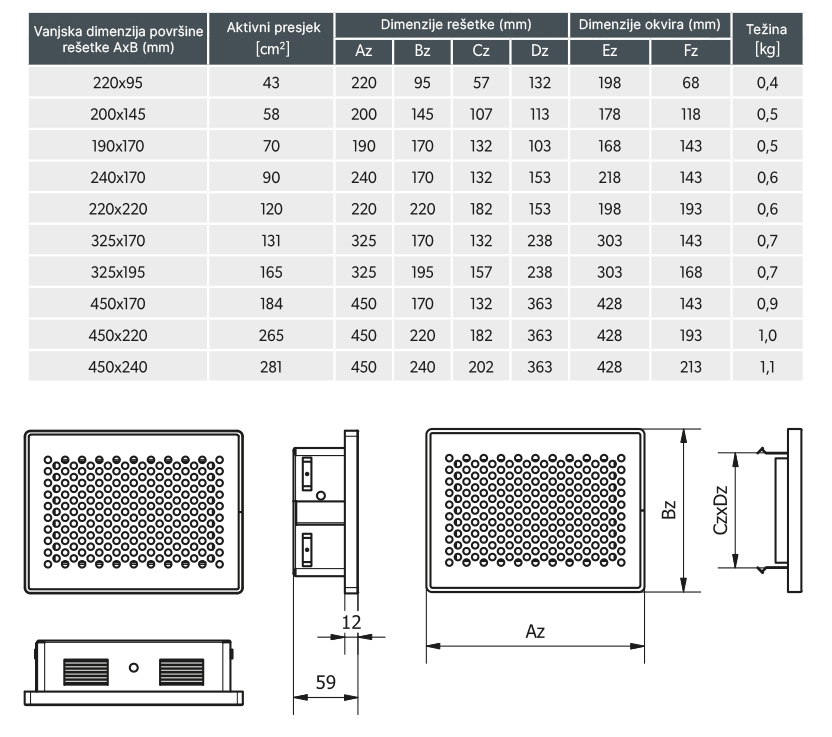 Model | Ventilacijska rešetka Trend bez žaluzina, Darco WK-KRVT220x220-ML.CZ |