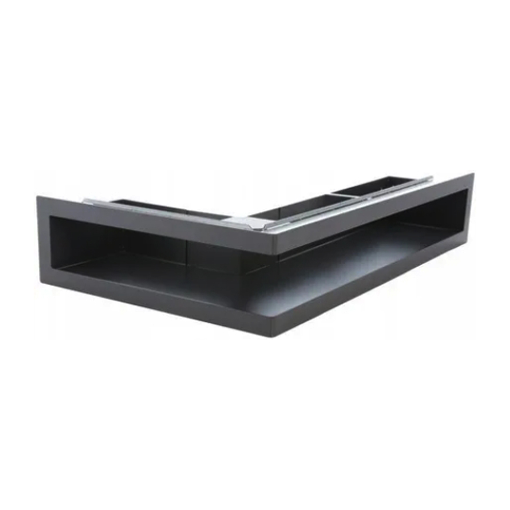 V-OPEN otvorene rešetke izrađene su od debele, crno plastificirane limene ploče (prednja strana i tijelo) te u verziji s prednjom stranom od poliranog krom-nikal lima. Prednja strana rešetke je zaseban element koji se naknadno povezuje s kanalom, što jamči glatku, estetsku površinu bez deformacija. Svi elementi kanala dorađeni su do najsitnijih detalja, kako ne bi postojala ni najmanja praznina kroz koju bi se mogla vidjeti unutrašnjost kamina. Zahvaljujući specifičnoj konstrukciji, gubici tlaka su minimalni, a rešetka se lako održava čistom.