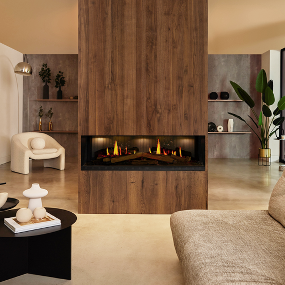 Dostupan u dvije dimenzije – Vista 70 i Vista 130, te u jednostranoj (I) i trostranoj (III) verziji, ovaj elegantni kamin spaja Opti-V® tehnologiju plamena, užarena keramička drvca s LED svjetlima i autentičan zvuk pucketanja vatre, pružajući vrhunski vizualni i zvučni doživljaj.