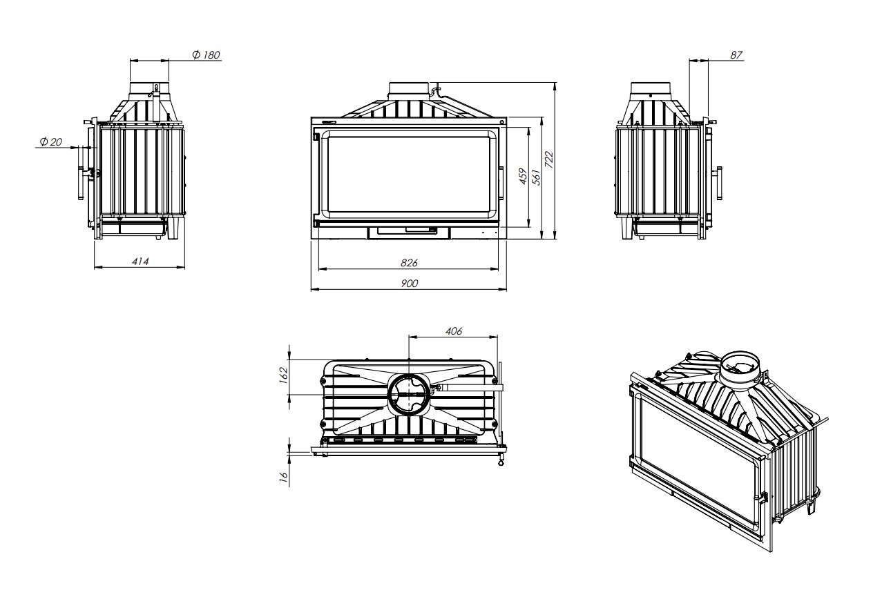 Preuzmite tehnički crtež: Bergamo kamin na drva.