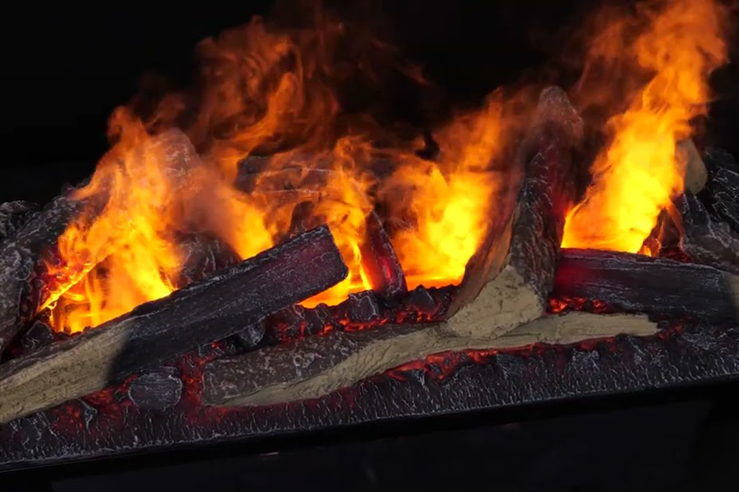 Kombinacija guste magle, užarenog drva i svjetlosnih efekata stvara impresivan dojam pravog kamina na drva. Na vrhu ovog električnog kamina nalazi se realistična imitacija drva, kroz koju prolazi svjetlost, dodatno naglašavajući efekt užarenog plamena.