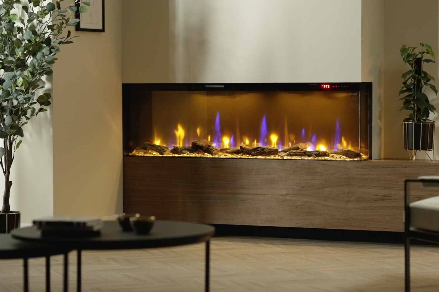 Zahvaljujući naprednoj tehnologiji, možete jednostavno mijenjati boju, visinu i brzinu plamena, kao i boju donjeg osvjetljenja, za potpuno personaliziran efekt. Optiflame® tehnologija osigurava realističan doživljaj, dok dekorativna drvca i kristali dodatno ističu estetiku plamena. Prostrano zatamnjeno staklo pruža odličan pogled na vatru i pojačava efekt plamena, unoseći toplinu i luksuz u vaš prostor.