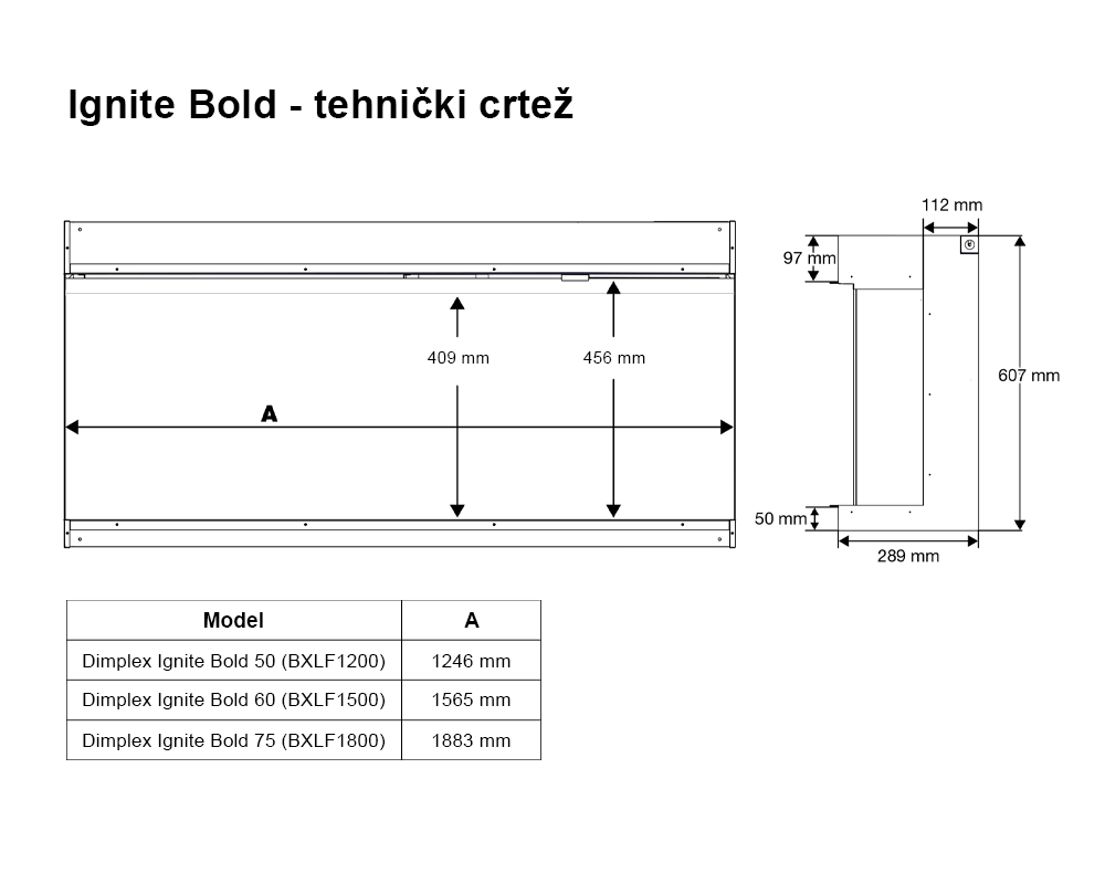 Jedna od glavnih prednosti Ignite Bold kamina je njegova prilagodljivost. Kamin je dostupan u tri dimenzije – 50″, 60″ i 74″ – što omogućuje lako uklapanje u različite prostore. Instalacija je fleksibilna, pa možete odabrati između: