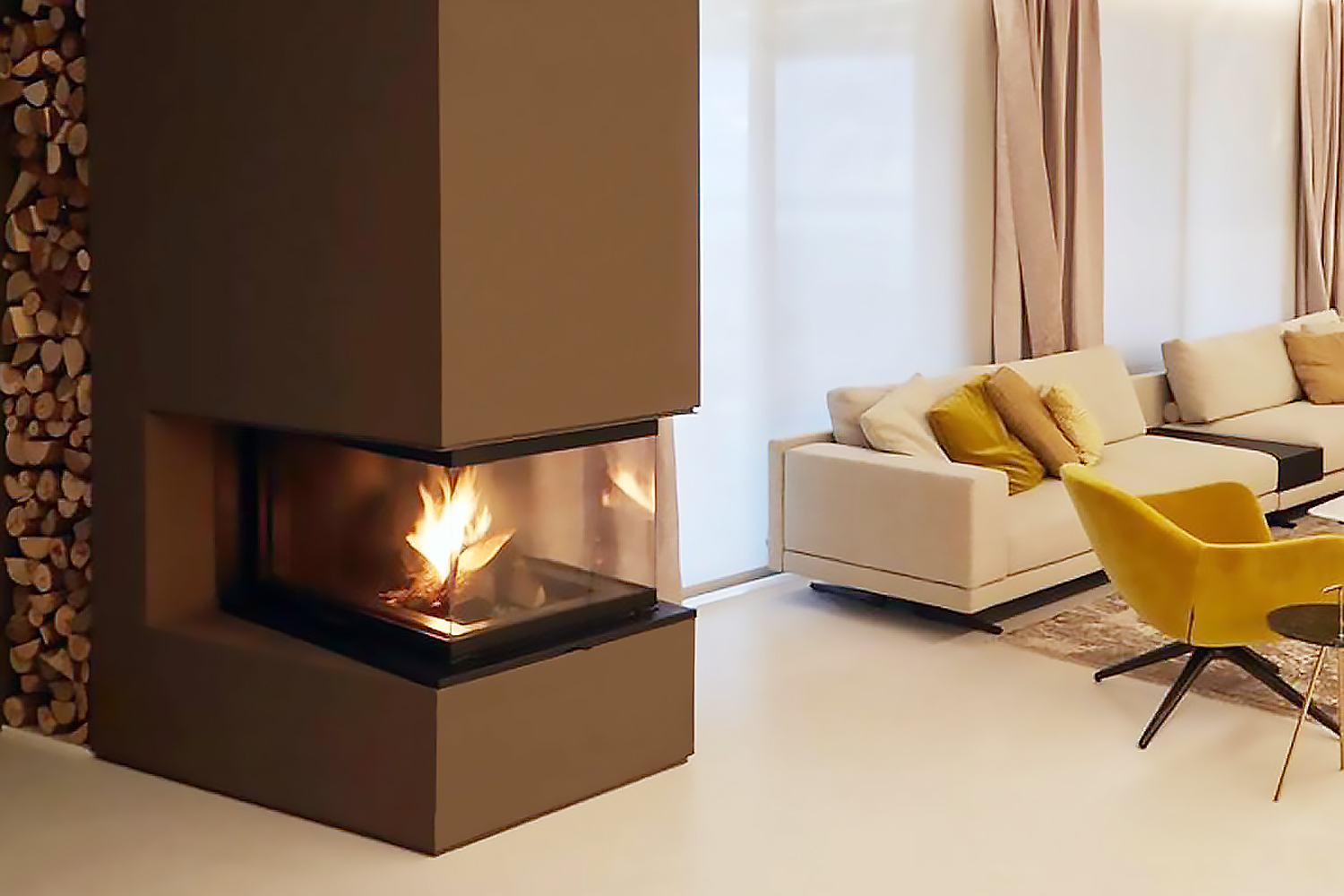 • Trostrani U kamin na drva sa sistemom podizanja vrata