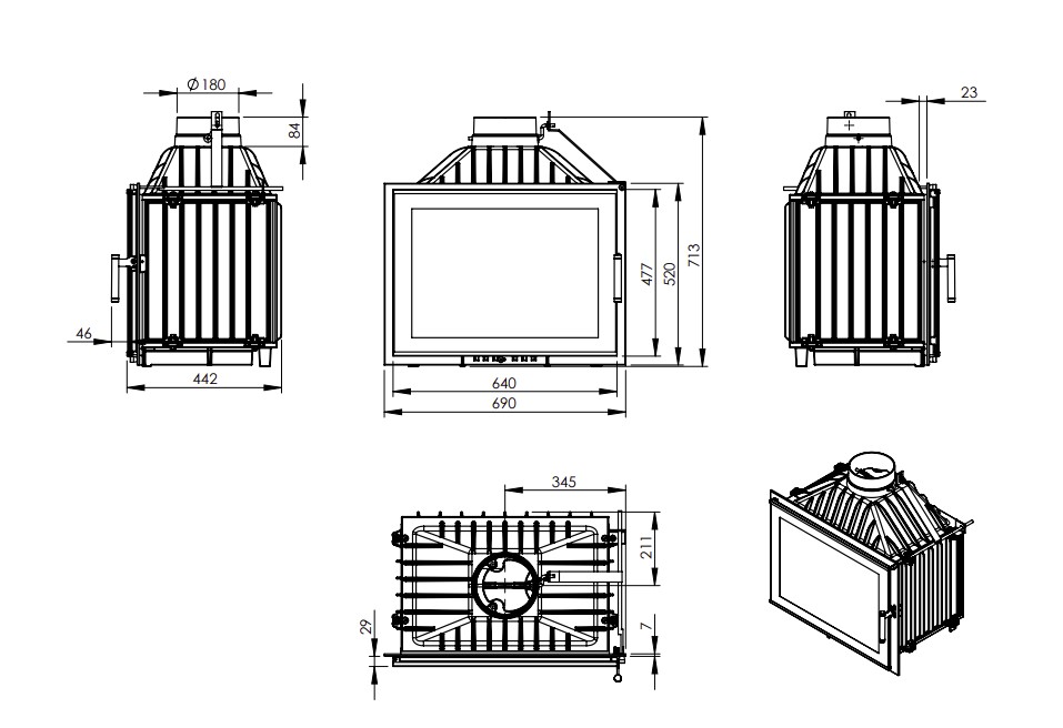 Preuzmite tehnički crtež: Torn LUX kamin na drva s prednjim staklomTehnički crtež Torn lux kamin na drva